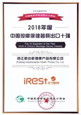艾力斯特除频获广交会CF大奖外,还持续多年被评为出口十强。为表彰我国按摩保健器具企业在国际化道路上耕耘,多年来为出口贸易、品质优先做出的突出贡献,医药保健品进出口商会再度授予浙江豪中豪健康产品有限公司“2018年度中国按摩保健器具出口十强”荣誉称号。艾力斯特坚持多年的国际化品牌策略,不管是自主品牌的世界版图扩张之路,还是众多世界知名按摩椅品牌的战略合作伙伴和指定供应商,均彰显了企业坚持不懈追求科技创新和精品智造的战略布局和实力。