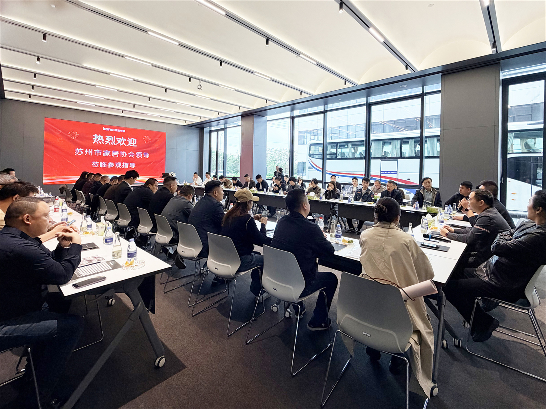科尔卡诺国内营销总经理邱癸剑对考察团到访表示欢迎,乐捷家居从板材到办公再到民用,愿以多元产品线为基础,深化未来合作。