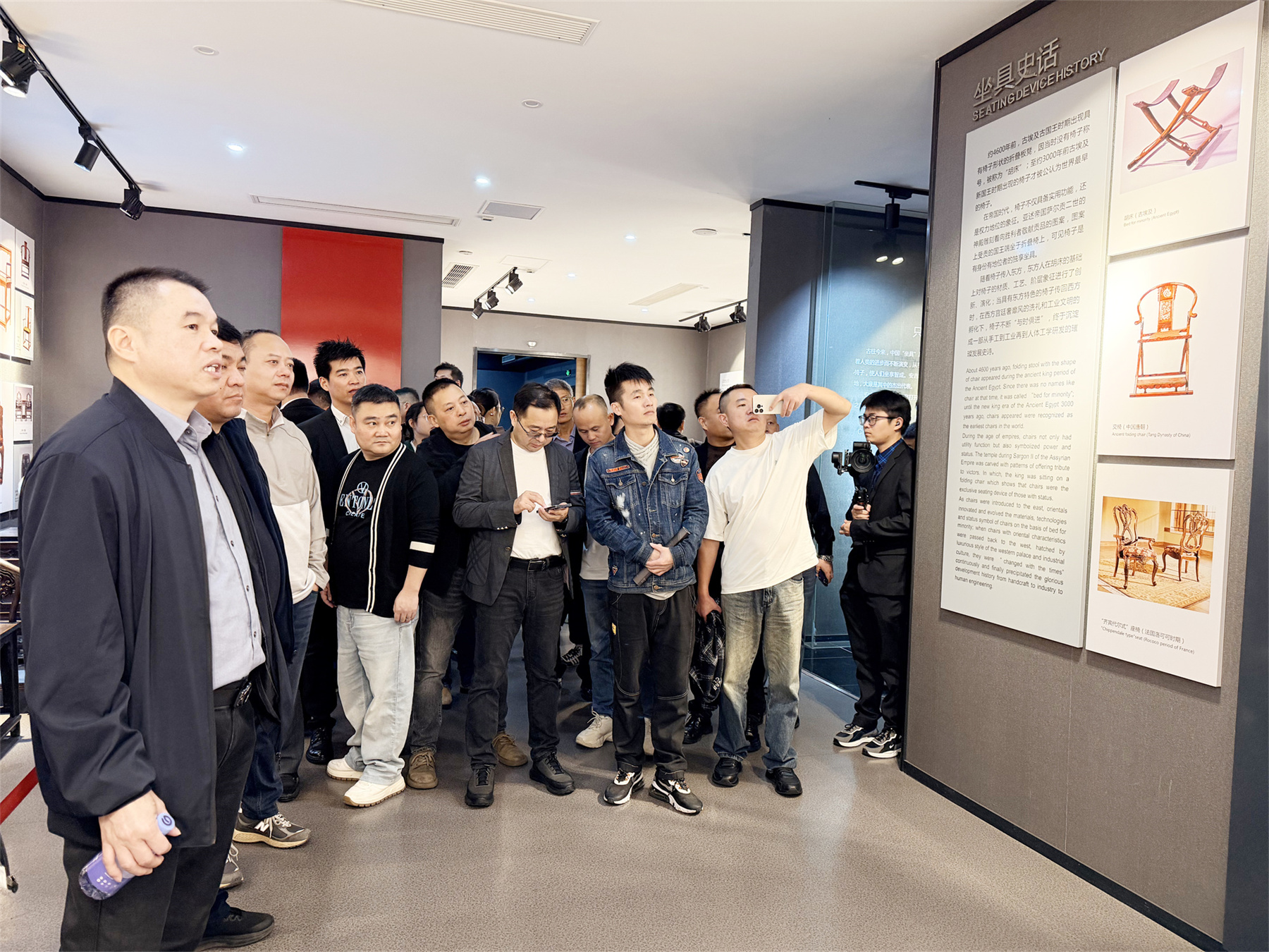 下午,考察团前往坐落于浙江省家具行业协会副理事长单位——大康控股集团有限公司的中国安吉椅业博物馆。博物馆以椅业文化为背景,讲解椅子的结构和造型的演变历程,从世界、中国以及安吉椅子的发展,以及现代绿色家居等方面,全面反映了椅子5000年的发展史、创新史。考察团成员们深入了解了中国椅业产业从起步到成为全球重要产业基地的崛起历程。